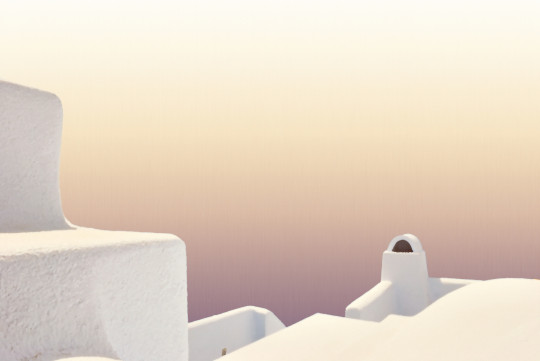 Die Panoramatapete zeigt einen Farbverlauf über den Dächern eines traditionellen Hauses auf Mallorca.