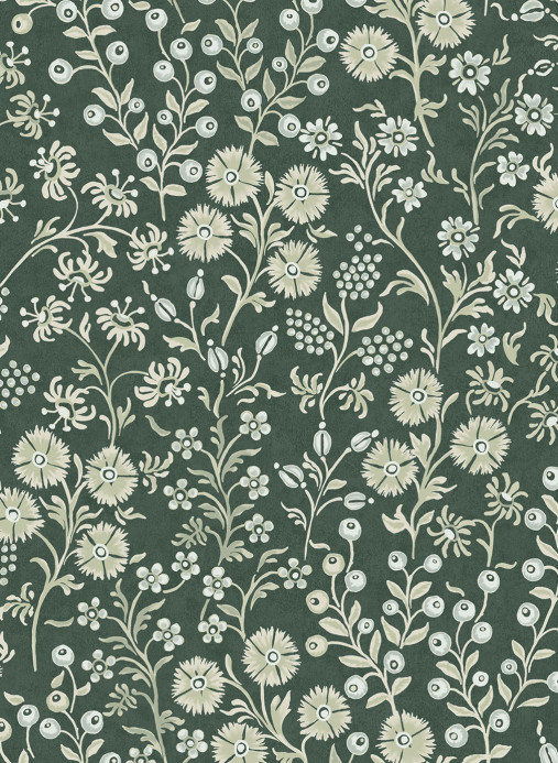 Die skandinavische Vintage Tapete zeigt ein zierliches Blumenmuster. Durch eine traditionelle Drucktechnik sind Teile des Motivs leicht erhaben. Das ikonische Muster holt skandinavischen Landhaus-Stil in Schlafzimmer und Wohnzimmer.