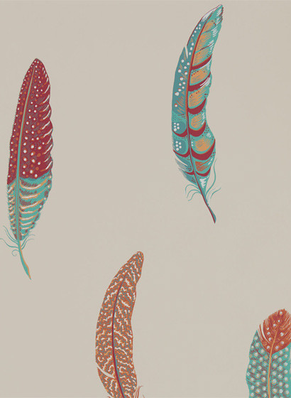 Elegant angeordnete, mit opaken Tinten bedruckte Rebhuhnfedern schmücken diese farbenfrohe Tapete von Sanderson. Ein schönes, kreidehaltiges Finish rundet den Look dieses atemberaubenden Designs ab.