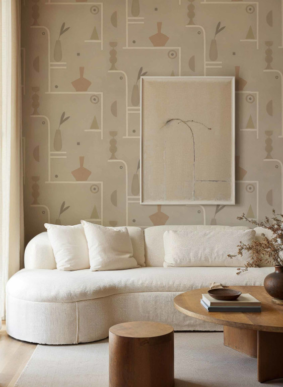 Die Tapete zeichnet sich durch ein ausgeprägtes Muster aus. Die Oberfläche besteht je nach Farbe aus griffigem Chenille Stoff oder Leinen. Der Stoff ist weich unterfüttert und macht die Tapete dreidimensional.