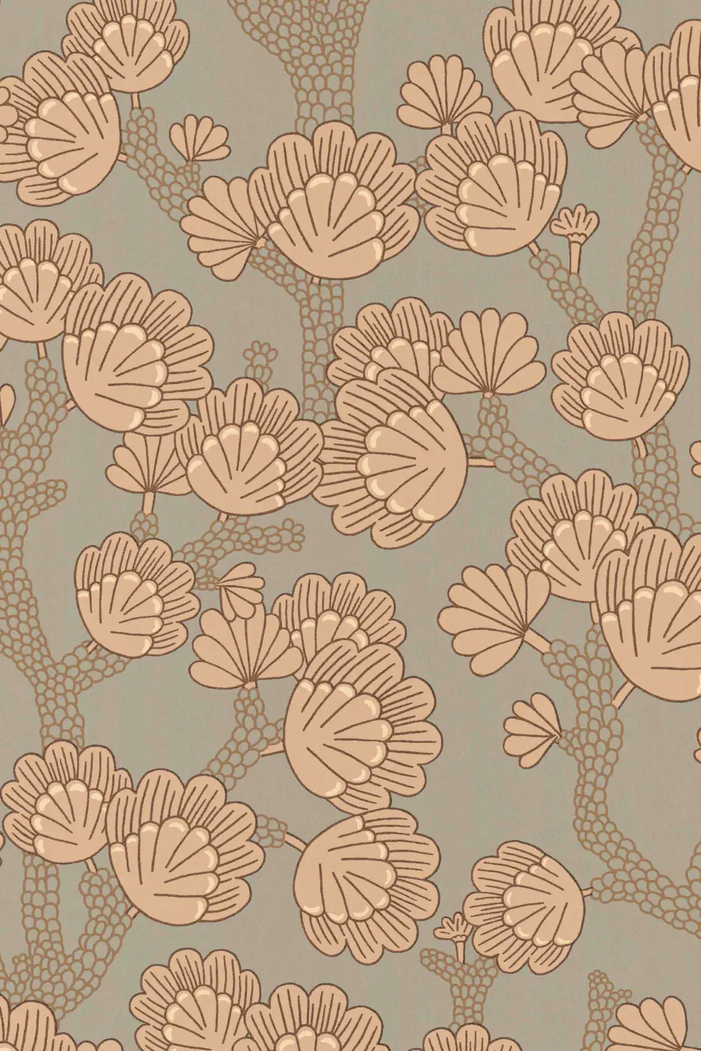 Die typisch schwedische Vintage-Tapete zeigt ein leichtes, luftiges Muster aus geschwungenen Linien und sanften botanischen Formen. Die Farbgestaltung erinnert an die sommerlichen Tage des Mittsommers und bringt eine frische, entspannte Stimmung in den Raum.