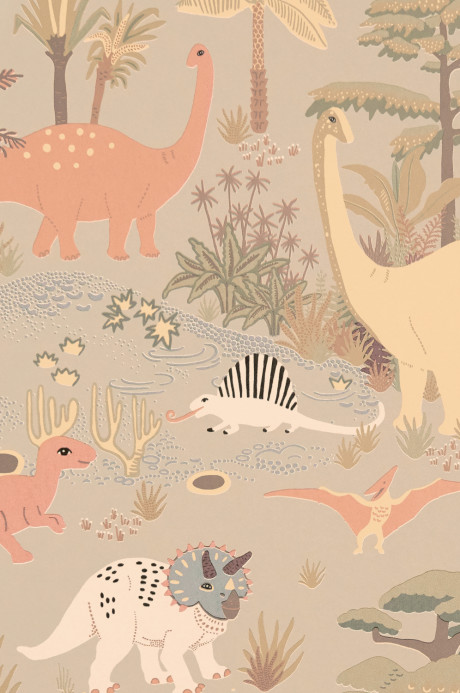 Die Kindertapete zeigt die faszinierende Welt der Dinosaurier im Vintage-Look. Das kindgerechte Motiv zeichnet sich durch eine detailreiche Illustration in sanften, erdigen Farbtönen aus, die eine gemütliche Atmosphäre schaffen. Das niedliche Design ist ein zeitloser Hingucker im Kinderzimmer und verleiht dem Raum einen Hauch von Abenteuer.