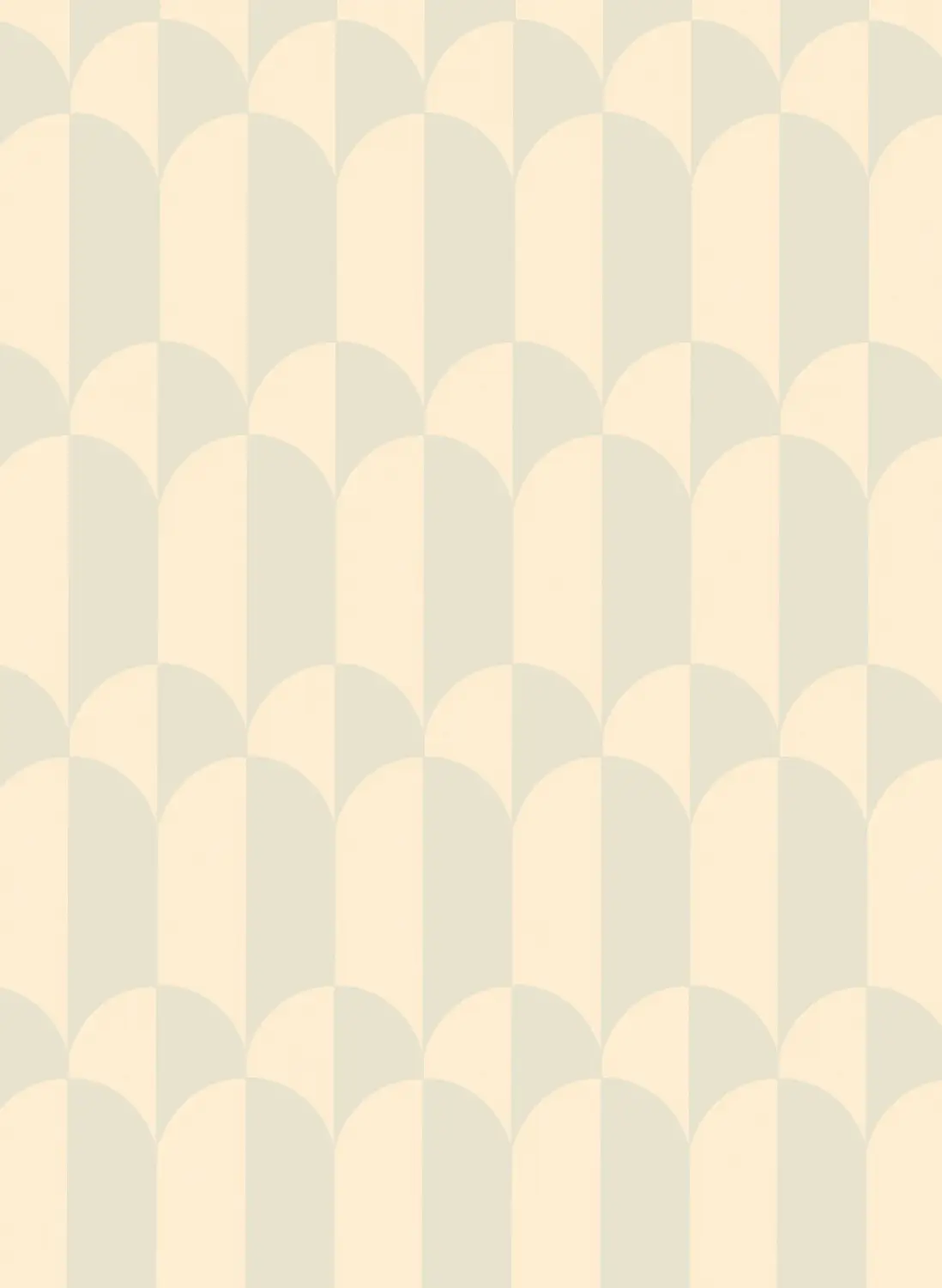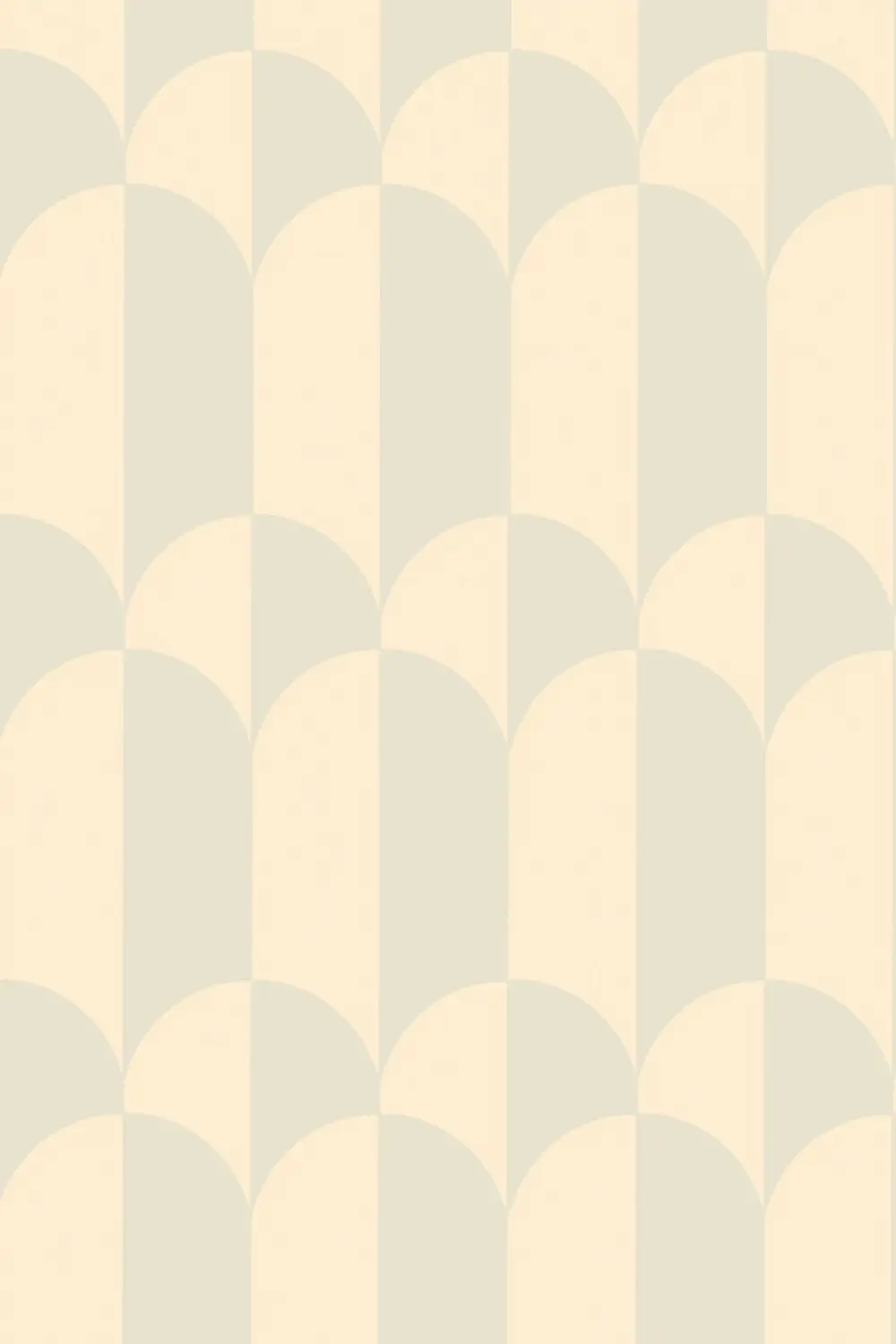 Die Tapete zeigt ein sanftes, geometrisches Muster aus geschwungenen Formen, das von schwedischem Art-Déco inspiriert ist. In ihrer zurückhaltenden Farbigkeit schafft die typisch schwedische Vintage-Tapete eine ruhige, helle Atmosphäre und unterstreicht einen modernen, zugleich wohnlichen Stil.