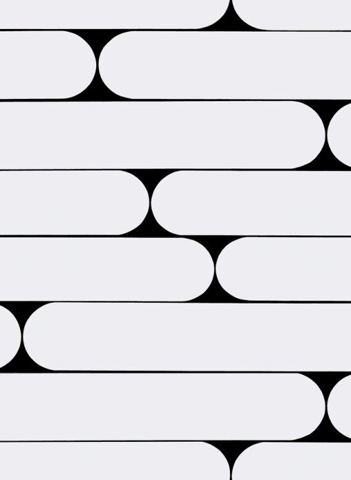 Die Tapete zeigt ein grafisches Muster aus horizontalen Rechtecken, die durch ihre abgerundeten Ecken eine sanfte Note bekommen. Das Design verleiht der Wand eine einzigartige Struktur und Ordnung und sorgt für eine zeitlose, nordische Optik in Wohn- und Schlafräumen.