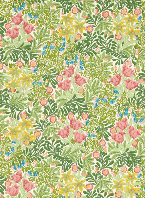 Die Blumentapete zeigt ein dichtes Muster voller Blüten. Bei dem wundervollen Design von 1877 handelt es sich um eine Hommage von William Morris an friedliche Waldspaziergänge und hübsche Blumen, die von mittelalterlichen Holzschnitten beeinflusst ist. Das Muster ziert elegant die Wand und vermittelt ein unbeschwertes Frühlingsgefühl in Wohn- und Schlafräumen.