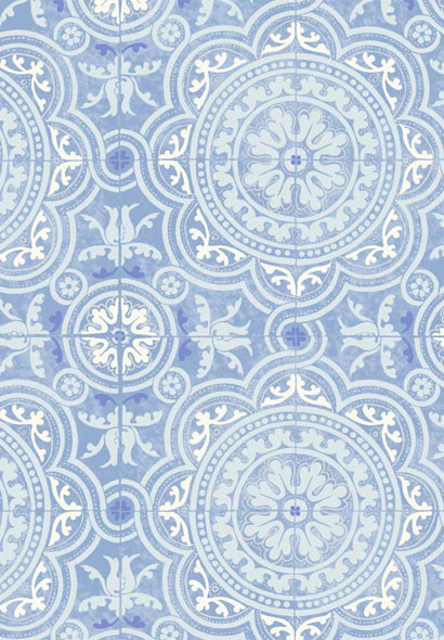 Als ein humoristischer Blickwinkel auf die "Weiß-und-Blau-Fliesen" schafft Piccadilly ein verblüffendes Muster von umständlich dekorierten Fliesen in traditionellen Farbgebungen von Blau, Türkis, Gelb und Schwarz.