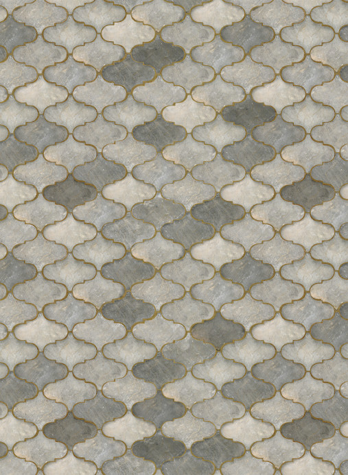 Das Wandbild mit Fliesenoptik zeichnet sich durch ein filigranes Fliesenmuster aus, das von Fugen in Goldtönen eingerahmt ist. Das elegante Mosaikdesign sorgt für ein luxuriöses Flair in Wohn- und Schlafräumen.