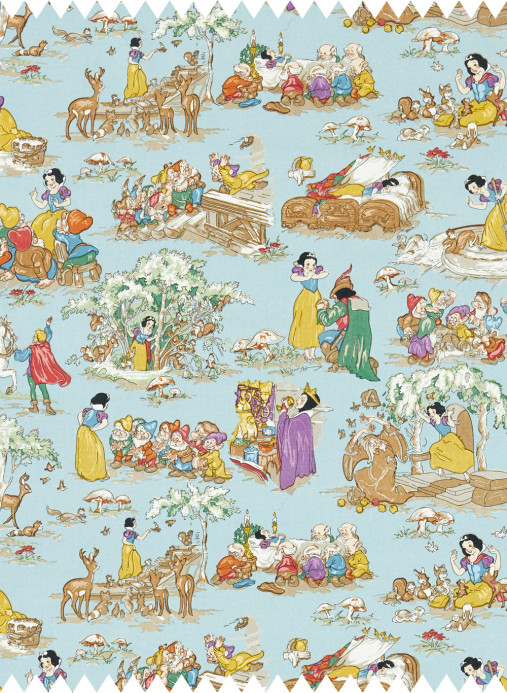 Der wunderschöne Schneewittchen-Druckstoff zeigt Szenen aus dem Walt Disney Film von 1938 und zeichnet sich durch eine bezaubernde Vintage-Ästhetik aus.