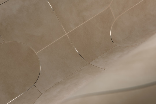 Das elegante Muster der Vliestapete besteht aus einer matten Oberfläche, die an die samtweiche Haptik von Wildleder erinnert. Feine Linien lassen eine Hochglanzfolie mit luxuriöser Metallic-Optik durchschimmern und ein geometrisches Muster entstehen.