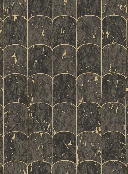 Das Muster der matten Vliestapete besteht aus einer rhythmischen Komposition runder Formen. Die leicht unterschiedliche Kolorierung der Flächen sorgt für Lebendigkeit. Die Linien des Musters sind mit Hochglanzfolie in Metallic ausgeführt und dadurch leicht erhaben. Der Hintergrund erinnert an die Optik von Korkoberflächen und verleiht Gallop einen edlen Vintage-Look.