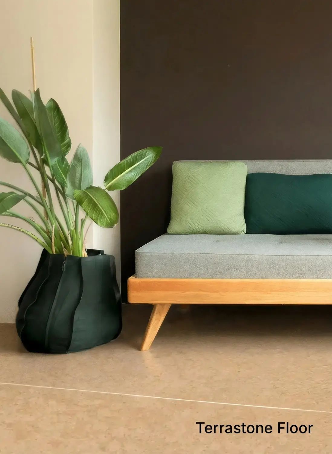 Als Boden wirkt er natürlich warm, ist strapazierfähig und pflegeleicht. Terrastone Rustique Floor ist für Böden mit leichter Beanspruchung geeignet.