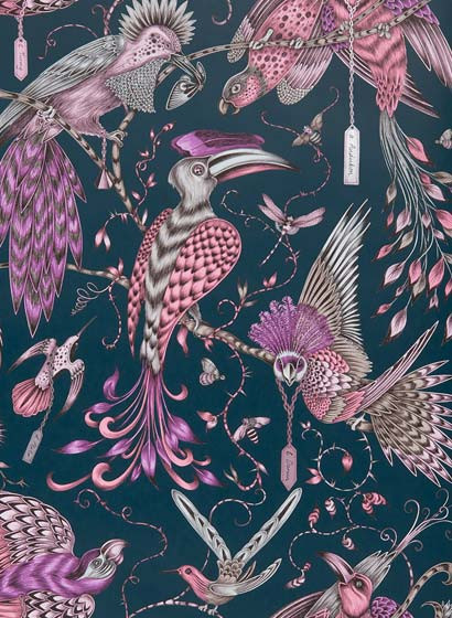 Vogeltapete Audubon von Clarke & Clarke - Pink