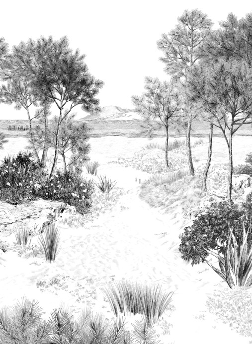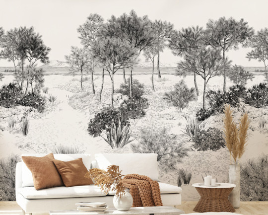 Das Panorama-Motiv erweitert den Raum, indem es einen Blick aus den Dünen aufs Meer hin öffnet.