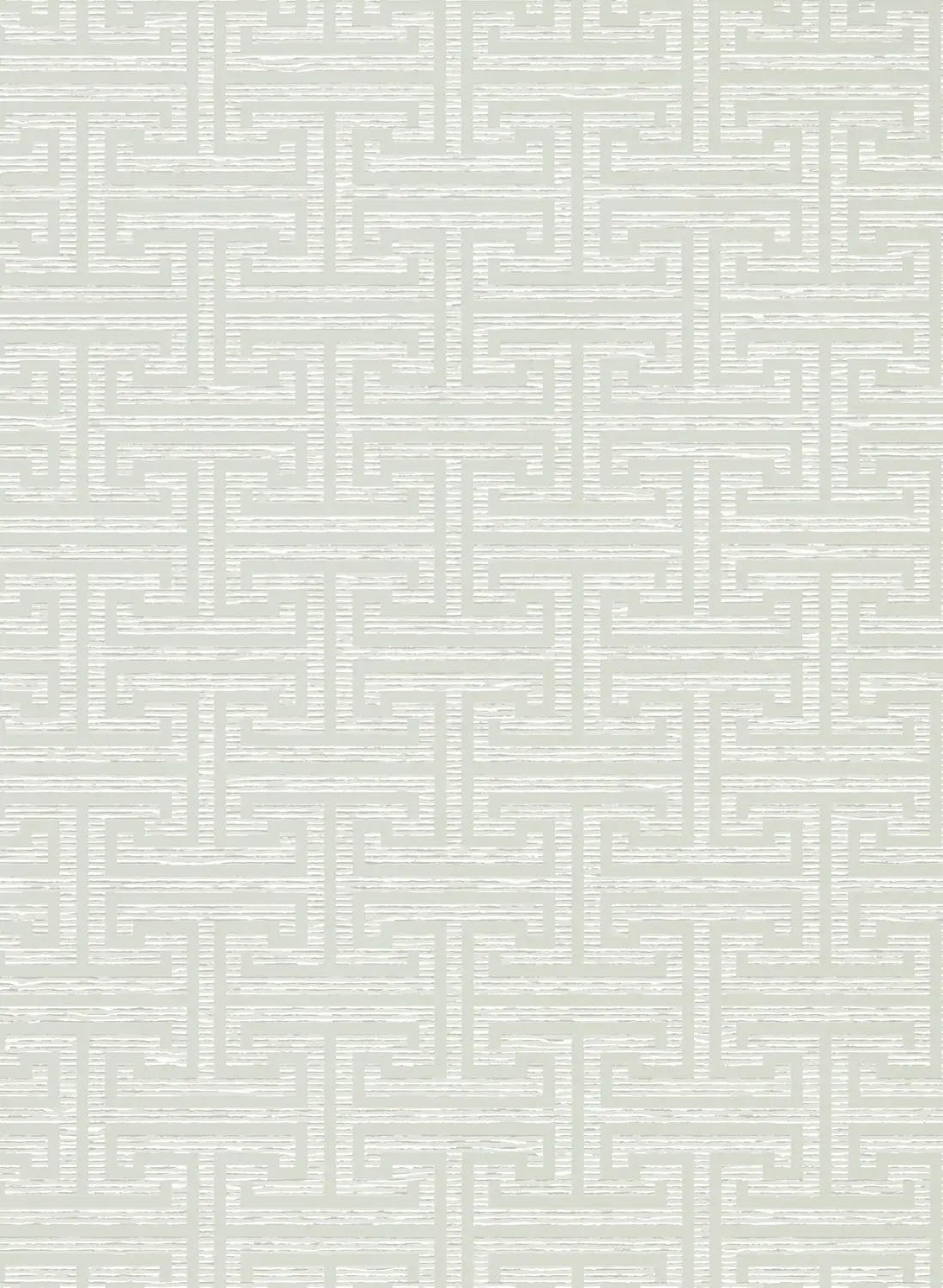Die Tapete zeigt ein feines, rhythmisches Muster, das an klassizistische Friese erinnert. Durch ihre sanfte visuelle Struktur und dezente Farbgebung entsteht eine lebendige aber zugleich harmonische Wirkung, die Räumen Tiefe und Charakter verleiht.