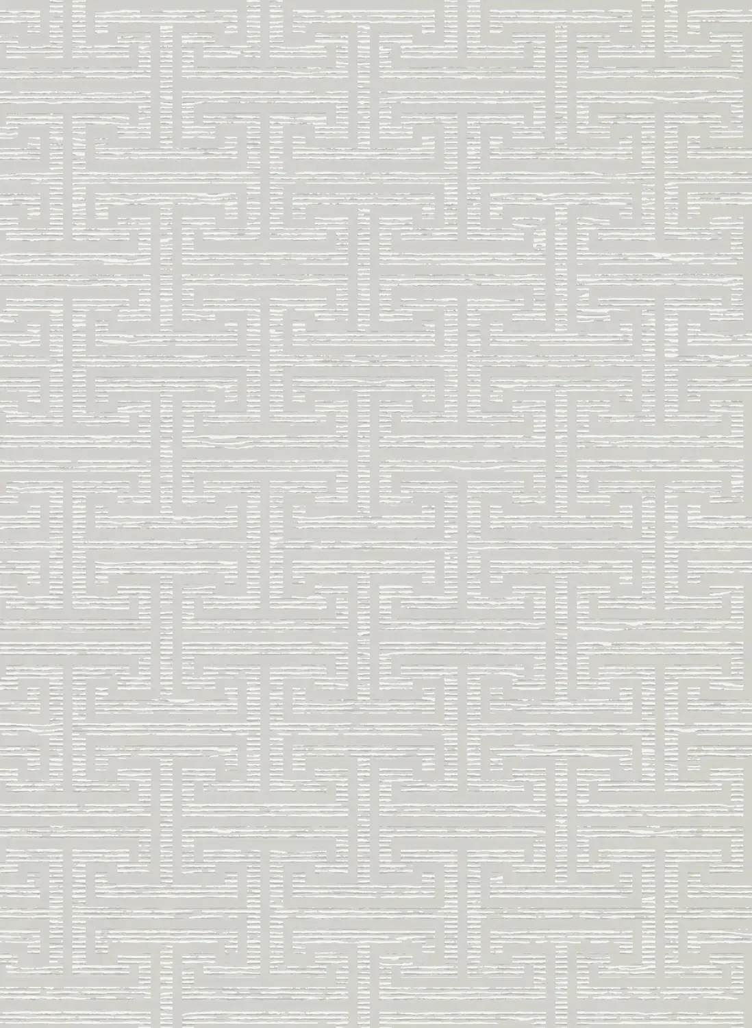 Die Tapete zeigt ein feines, rhythmisches Muster, das an klassizistische Friese erinnert. Durch ihre sanfte visuelle Struktur und dezente Farbgebung entsteht eine lebendige aber zugleich harmonische Wirkung, die Räumen Tiefe und Charakter verleiht.