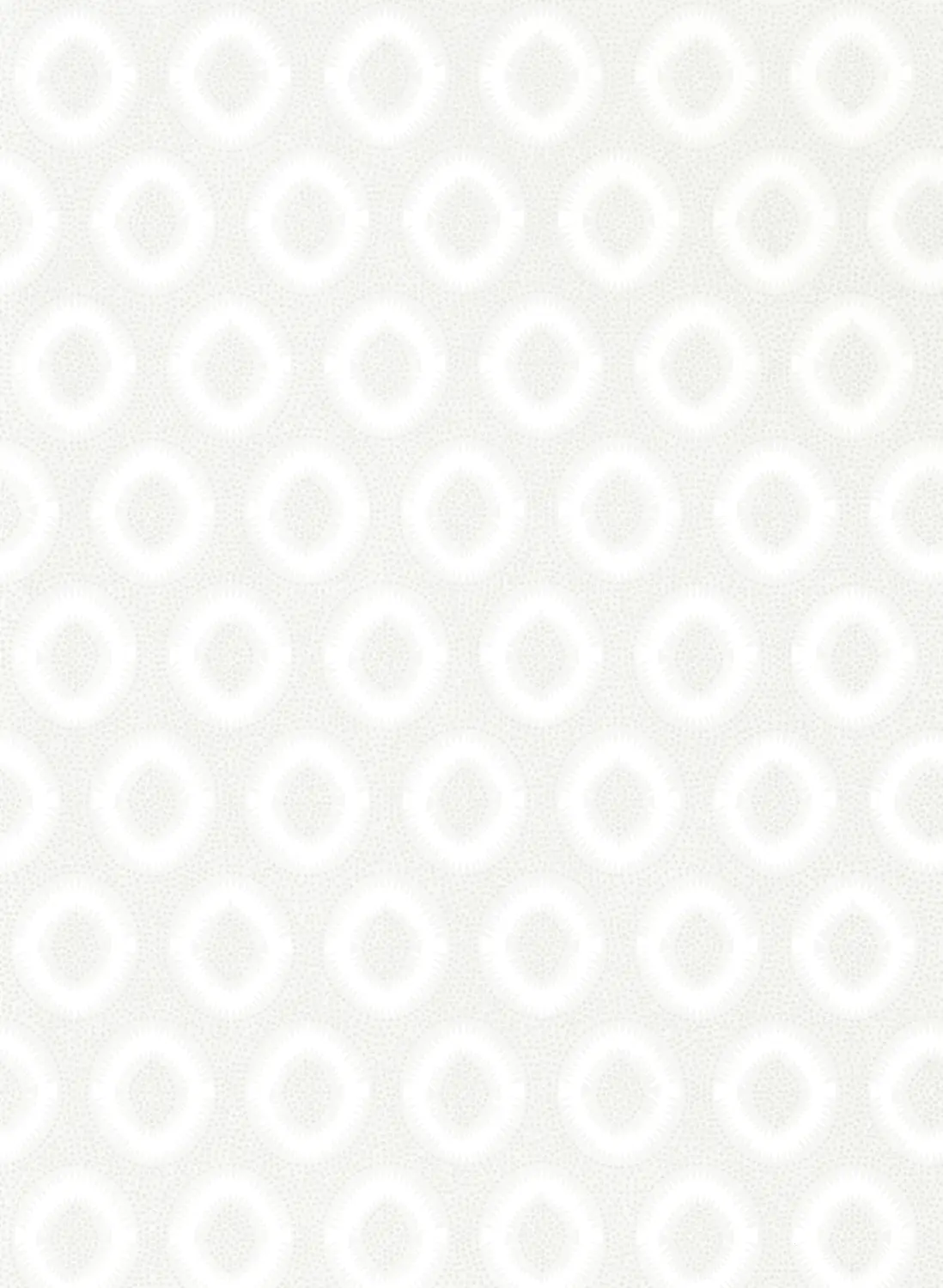 Die Tapete zeigt ein gleichmäßiges, textilähnliches Muster mit sanften Kreisformen, die eine Tiefe erzeugen. Sie bringt Leichtigkeit und Eleganz an die Wand und harmoniert besonders gut mit modernen, hellen Raumkonzepten.