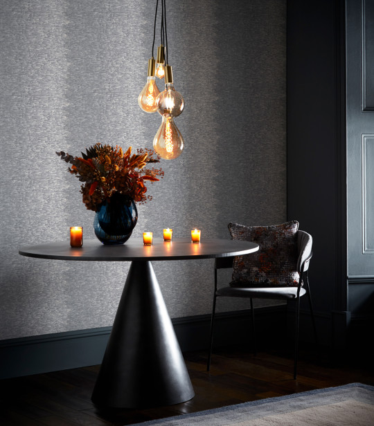 The striped wallpaper features a pattern reminiscent of glass structures. The metallic finish creates elegant living rooms and bedrooms.
