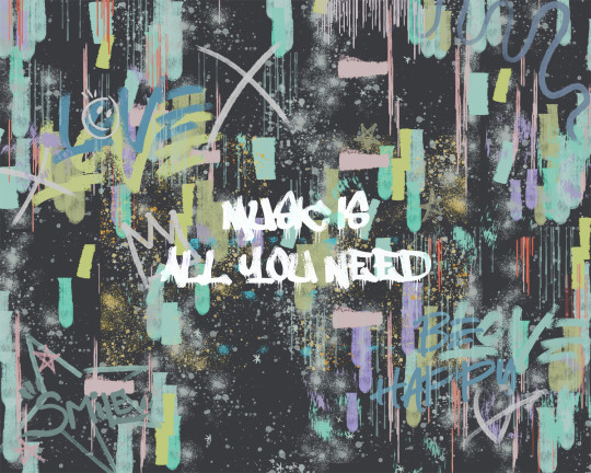 The mural for children shows an impressive graffiti motif. The lettering "Music is all you need" is set off by explosive colours and brings the creativity of street art directly into the room.