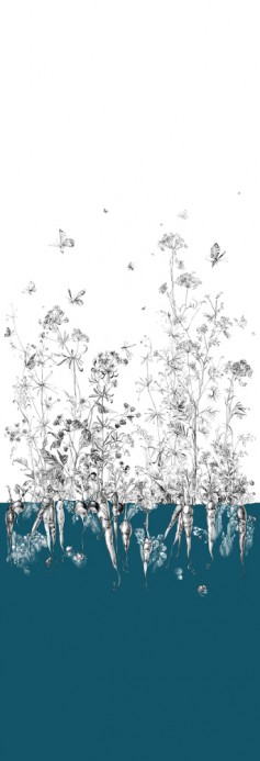 Edmond Petit Wallpaper Licvres/Fenouil/Tournesol - Bleu Fenouil Sauvage Gauche - Bleu
