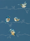 The wallpaper shows typical English birds in all their beauty. Plenty of space between the animals creates a generous, open effect on the wall.