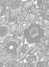 The floral wallpaper shows a fascinating pattern of lush blossoms drawn on a monochrome background. The bold lines give the wall a bold and expressive look.