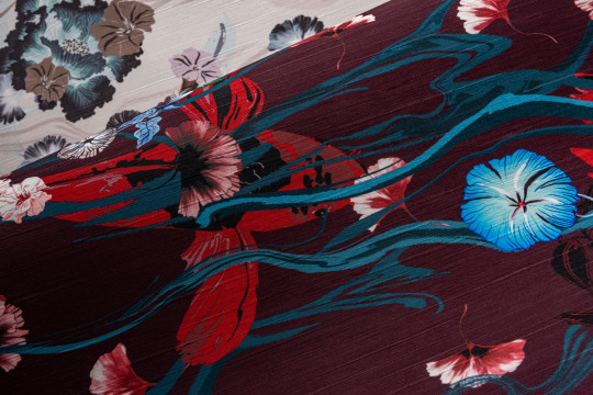 Le papier peint représente la scène d'un étang japonais classique. L'utilisation d'une surface de tissu luxueuse met particulièrement bien en valeur le motif.