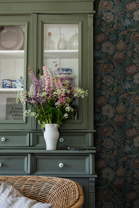 Le motif peint à la main de ce papier peint intissé mat s'inspire des motifs de tissus jacquard et des tapis orientaux. Le papier peint aux couleurs sourdes et inspirantes est utilisé indifféremment dans la chambre à coucher, le salon, la cuisine ou la salle à manger.
