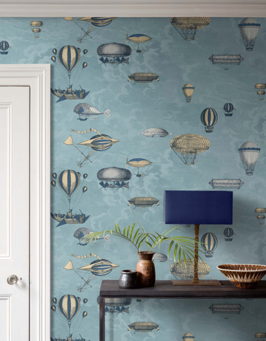 Cole & Son Papier peint Macchine Volanti - Stone/ Rouge/ Blue