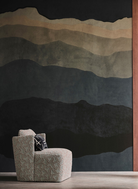 Le papier peint imite à s'y méprendre l'aspect et le toucher d'un tissu de lin finement tissé. Il est le résultat d'une longue collaboration entre le label d'intérieur Flamant et le fabricant de papiers peints Arte, connu pour sa technique d'impression sophistiquée. Des pigments spéciaux donnent à la surface du papier peint une structure tridimensionnelle.
