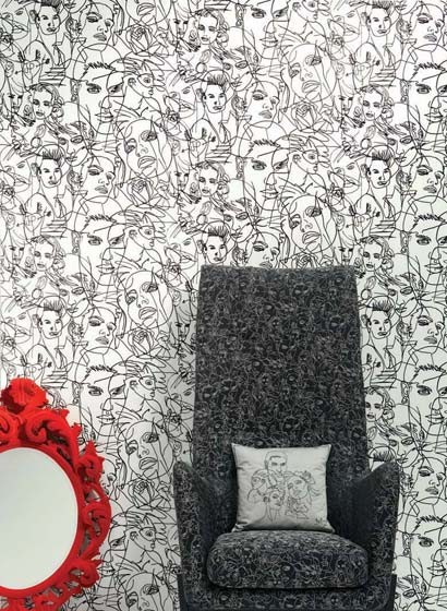 Croquis - papier peint visages de Jean Paul Gaultier, papier peint intissé avec flocage velouté