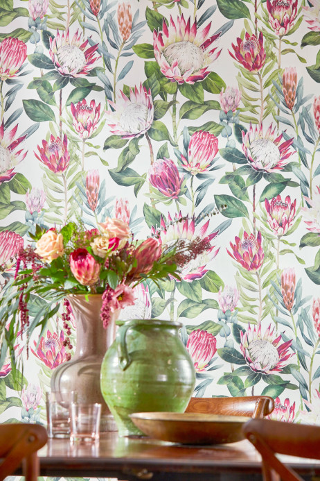 King Protea - papier peint à fleurs de Sanderson, papier peint intissé lisse
