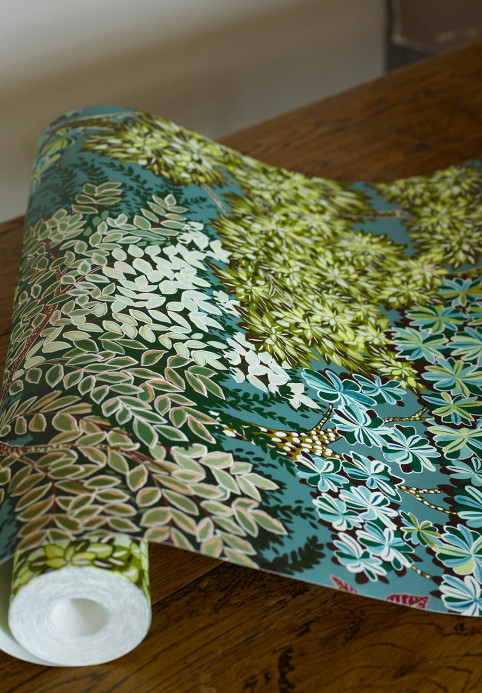 Il fitto motivo floreale della carta da parati in tessuto non tessuto opaco è stato ispirato da una visita al British Museum di Londra. La designer Josephine Munsey ha tradotto elementi della pittura indiana in miniature nel suo stile di disegno per la carta da parati.